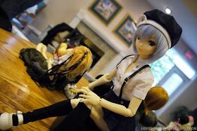My friends also came for the long ride from Vancouver, BC to Bremerton, WA. The one on the left is Stephanie's Lilycat Cerisedoll and on the right is Altsune's Milly. I'm still waiting to see if I can go to this year's PNWBJD Expo or not.